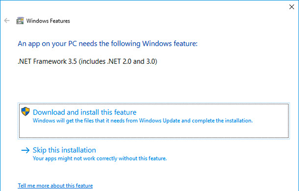 In addition, the following will be displayed if the computer does not have NET Framework installed.