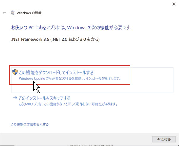 さらに、NET Frameworkがインストールされていないパソコンの場合は以下が表示されます。