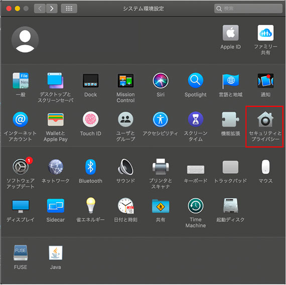 「システム環境設定」から「セキュリティとプライバシー」をクリックする